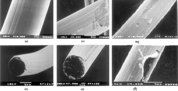 改性電極是電化學(xué)分析中應(yīng)用最有意義的工具?;钚蕴坷w維是制備修飾電極的容易獲得和有用的材料。纖維促進(jìn)小體積溶液的工作,同時(shí)保持大的電極表面積1。在對(duì)在活性炭纖維上電鍍貴金屬制備的活性炭纖維電極進(jìn)行了研究?;钚蕴坷w維纏繞在鈦網(wǎng)上。通常34 使用一厘米長(zhǎng)的纖維束(每束約6000根纖維)以確保鈦網(wǎng)的均勻覆蓋。纏繞在紗布上后,將這些纖維的末端合并在一起,然后擰緊在電極的桿上。然后用小的鈦夾將這些纖維固定在桿上。電極用丙酮清洗除去油脂化合物,在電鍍之前和之后稱(chēng)重。已經(jīng)顯示在活性炭纖維的表面上沉積銀,金或銅的金屬膜能夠提高碳中Li嵌入/脫嵌反應(yīng)的CV峰高度,這意味著反應(yīng)速率提高。CV的陽(yáng)極峰的峰高隨著厚度的變化而變化。黃金和銅是最薄的電影最高峰,而銀則表現(xiàn)出復(fù)雜的行為,其中必須考慮取決于膜厚度的晶體取向變化的貢獻(xiàn)。增強(qiáng)效應(yīng)基于兩個(gè)因素闡明,即電導(dǎo)率增加和在銀膜表面上形成合適的固體電解質(zhì)界面。在圖1中,圖示了用真空沉積的銅,金和銀膜覆蓋的活性炭纖維的SEM圖像。該圖顯示活性炭表面似乎完全被緊密的金屬膜覆蓋。
