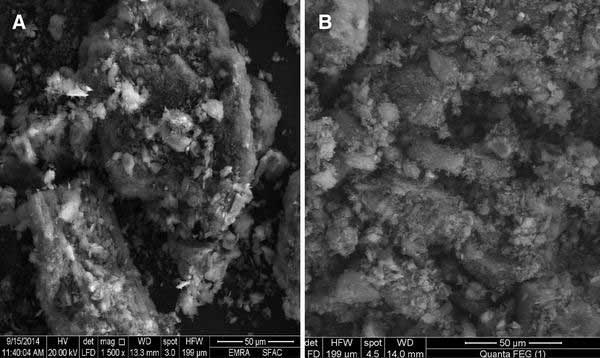 活性炭的SEM顯微照片顯示在圖.1a,b中?;钚蕴吭谖角暗腟EM圖像(圖.1a)顯示了單個(gè)顆粒的不規(guī)則大小和形狀以及不均勻表面形態(tài)。多孔結(jié)構(gòu)呈現(xiàn)出不同的寬度。吸附后,很明顯,該孔已覆蓋的草氨酰(圖.1的B)。